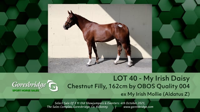 MY IRISH DAISY reg. liver chestnut filly 3 yrs. about 16.0h. by OBOS QUALITY dam MY IRISH MOLLIE by ALDATUS Z. Breeding Recorded.