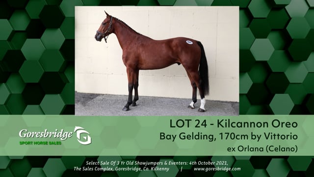 KILCANNON OREO reg. bay geld 3 yrs. about 16.3h. by VITTORIO dam ORLANA by CELANO. Breeding Recorded.