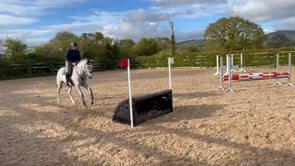 ANN AHH SILVERSIDE reg. grey geld. 4 yrs. about 1.6m. Broken and riding very well. Correct horse with 3 balanced paces. Has schooled around numerous country courses. Has schooled around courses of showjumps.