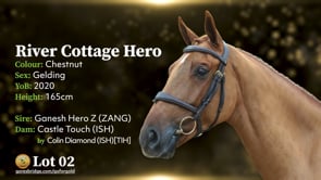 RIVER COTTAGE HERO reg. chestnut geld. 5 yrs. about 16.1h. by GANESH HERO Z dam CASTLE TOUCH by COLIN DIAMOND. Breeding Recorded.