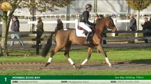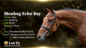 MONBEG ECHO BAY reg. bay geld. 5 yrs. about 16.3h. by PRESIDENTIAL BALL dam MADGESLANE KAROL by OBOS QUALITY 004. Breeding Recorded.