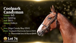 COOLPARKS CANDYMAN bay geld. 3 yrs. about 1.68m by SLIGO CANDY BOY dam COOLPARK DIAMONDS SARCO by SHANNONDALE SARCO. Breeding Recorded.