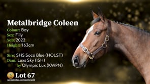 METALBRIDGE COLEEN bay roan filly 3 yrs. about 16h. by SHS SOCO BLUE dam LUXS SKY by OLYMPIC LUX. Breeding Recorded.