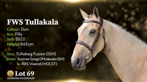 Reg. dun filly 3 yrs. about 16.1h. by TULLABEG FUSION dam SUMMER SONGS OF KALEVALA by ARS VIVENDI. Breeding Recorded.