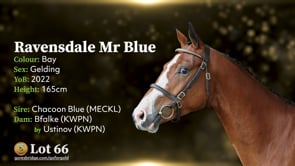 RAVENSDALE MR. BLUE bay geld. 3 yrs. about 1.65m by CHACOON BLUE dam BFLAKE by USINOV. Breeding Recorded.