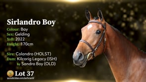 SIRLANDRO BOY reg. bay geld. 3 yrs. about 1.7m by COLANDRO dam KILCORIG LEGACY by SANDRO BOY. Breeding Recorded.