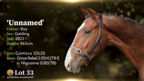 UNNAMED reg. bay geld. 3 yrs. about 16.1h. by CONTICCO dam GROVE REBEL by NIGRASINE. Breeding Recorded.