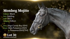 MONBEG MOJITO reg. black geld. 3 yrs. about 16.2h. by SLIGO CANDY BOY dam ALDA PUISSANCE by PUISSANCE. Breeding Recorded.