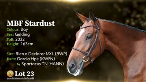 MBF STAR DUST reg. bay geld. 3 yrs. about 16.1h. by RIEN A DECLARER MXL dam GARCIA HPE by SPARTACUS. Breeding Recorded.