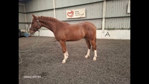 Reg. chestnut geld. 3 yrs. about 16.0h. by CASTLECOMER Q dam WHITSTONE JUDY by RICARDO SAM. Breeding Recorded. Lunging well over poles. Quiet to shoe, box and in traffic. Easy to handle with a good temperament. Has a good step, should make jumper or eventer or any sphere.