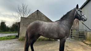FERGALS LOCKDOWN reg. grey geld. 3 yrs. about 16.0h. by MOVEEN LOCK dam FERGALS DELIGHT by LOUGHMOR RAMBLER (CP). Breeding Recorded. Quiet to shoe and box. Super model & step. Dam is a full connemara.