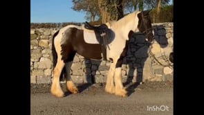 DROMALGA NELLY 2 reg. piebald filly 4 yrs. about 15h. Broken and riding. Hacks out alone and in company. Jumping a course of fences. Been to arena hire. Schooled cross country.
