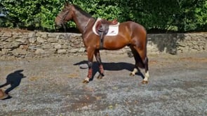 BEZTIE reg. bay geld. 4 yrs. about 16.1h. by DIGNIFIED VAN'T ZORGVLIET dam FORREST RUBY by CAVALIER LAND. Breeding Recorded. Just broken and riding. Quiet to shoe, box, clip, ride and in traffic. Hunted with the Woodstown Harriers on for 4 occasions for 1 season. Schooled cross country.