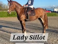 LADY SILLOT reg. chestnut mare 5 yrs. about 16.1h. by CLOONACAUNEEN GRANDPA dam KILLEEN BRIDGE by SILLOT HILL. Breeding Recorded. Broken and riding. Hunter trialled. Competed at training shows. Vaccinated against Equine Influenza. Quiet to shoe, box, clip, ride and in traffic. Registered Irish Draught, Class 1. This mare has hunted with the South Westmeath's and proven to be very brave. Has done training shows. Very attractive animal with good movement and presence. A lovely mare for someone to bring on.